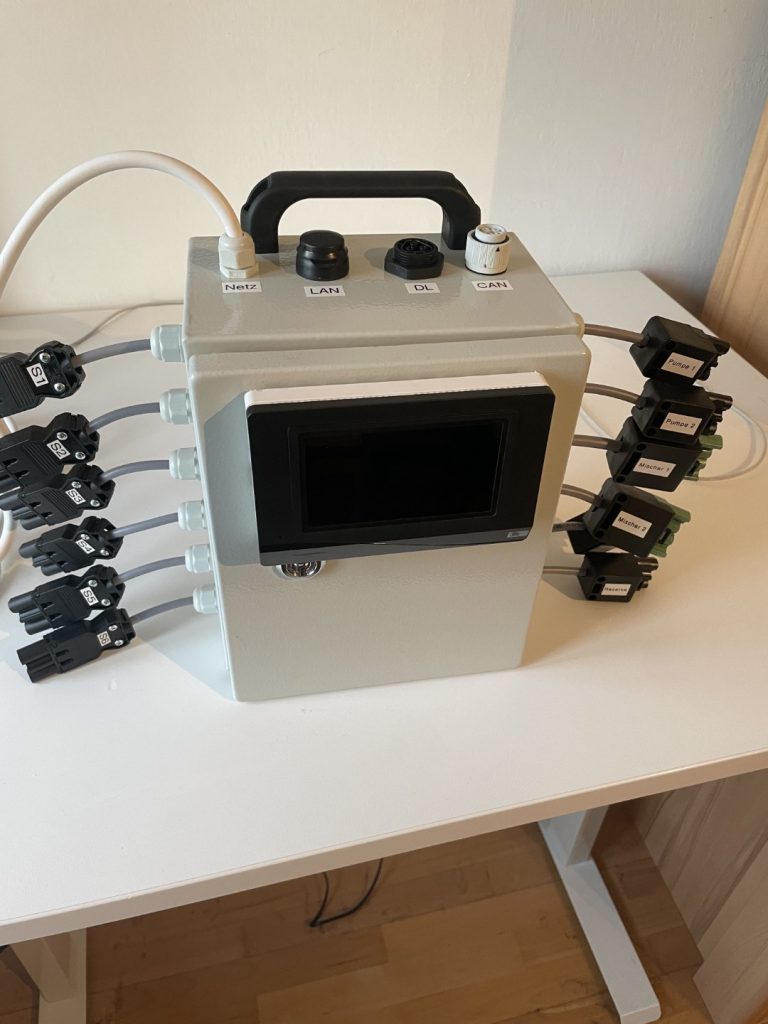 Das Gegenstück zum mobilen Datenlogger ist unser mobiler Notfallregler. Der Regler ist so konzipiert, dass steckerfertig alle gängigen Pumpen oder Mischer angeschlossen werden können. Über Verlängerungsleitungen für Pumpen und Fühler kann der Aufbau an die Größe der Anlage angepasst werden.